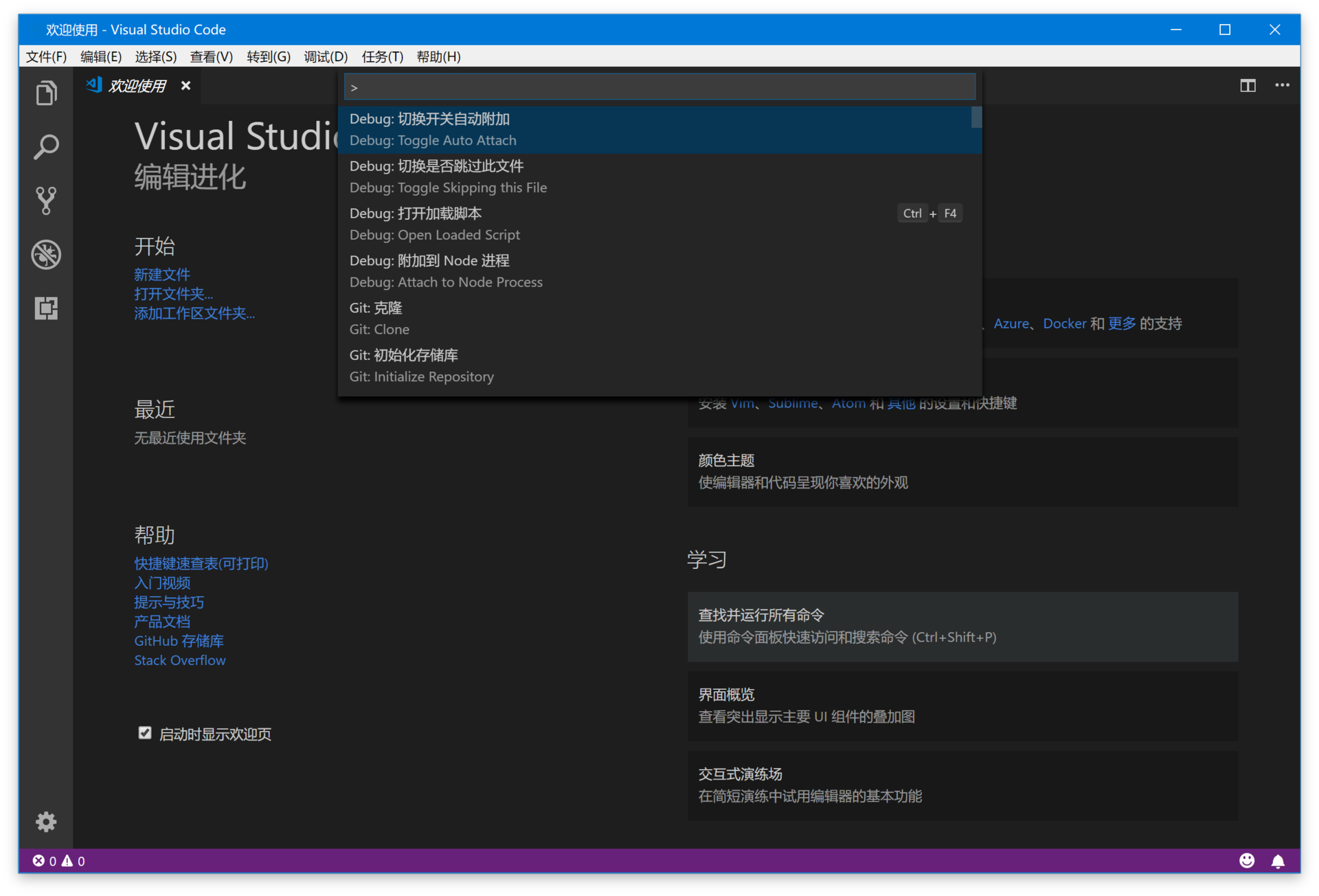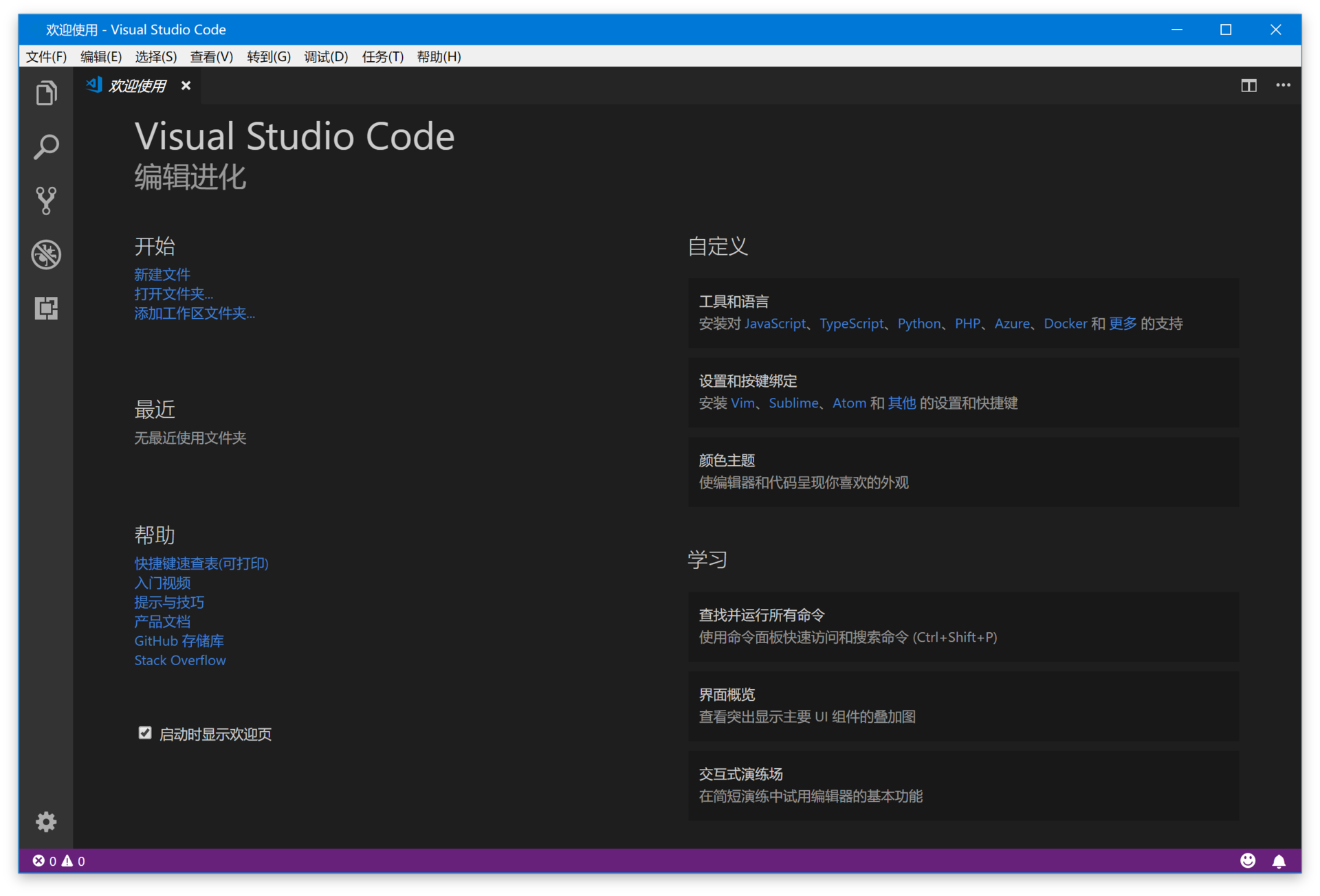 首次启动VS Code,你将看到的“欢迎使用”页面