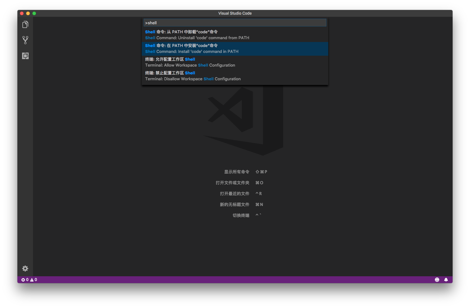 如果你是在 macOS 上使用,安装后打开命令面板,搜索Shell 命令:在 PATH 中安装 “Code” 命令