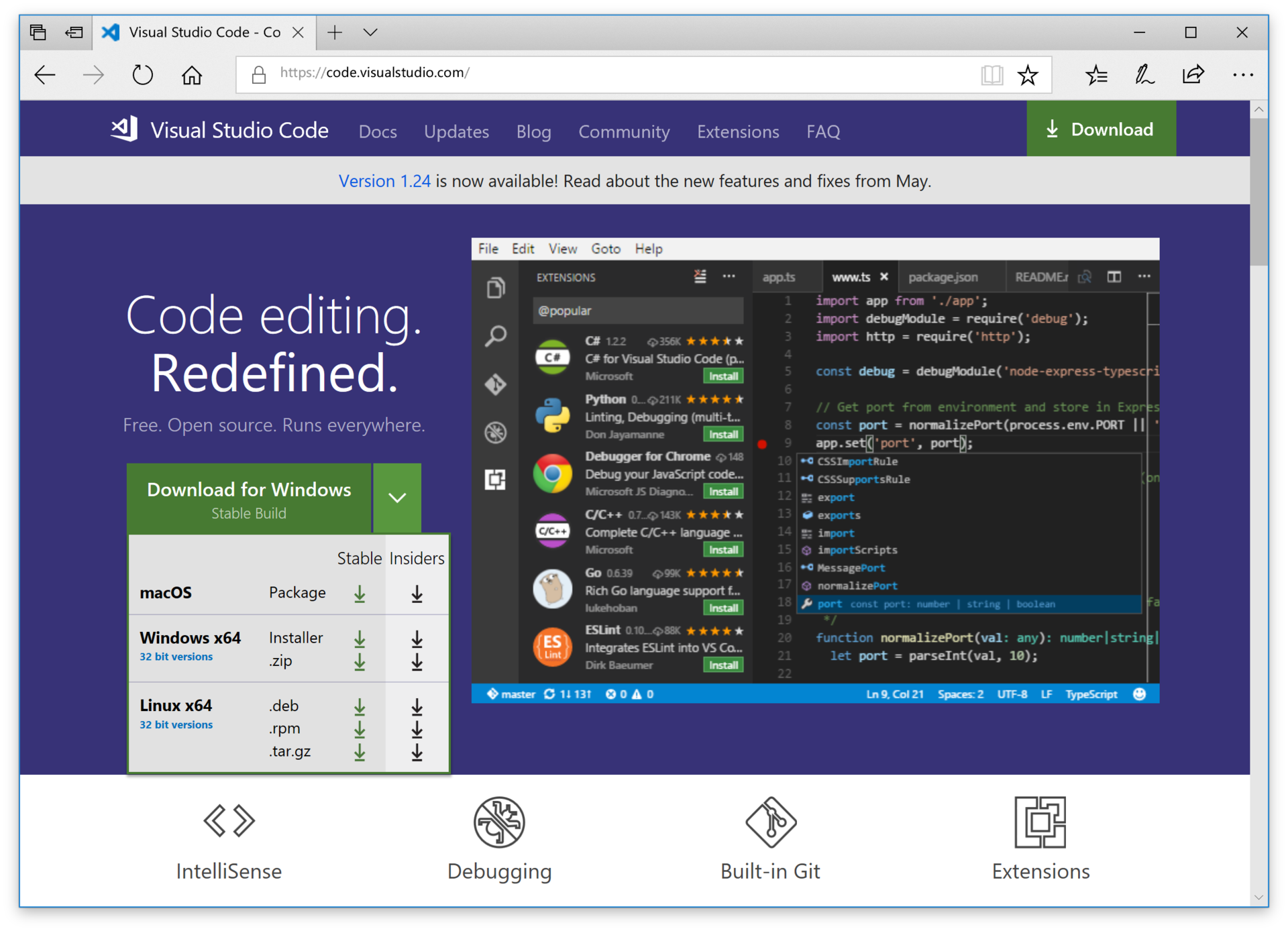 除去VS Code核心开发团队,现在全世界大概还有一万五千名用户在使用 Insiders 版本。不过,如果你刚刚接触 VS Code ,那么稳定版本肯定更适合你。但如果你已经使用 VS Code 有一段时间,我还是非常推荐你试一试 Insiders ,因为使用这个版本有这样几个好处:
