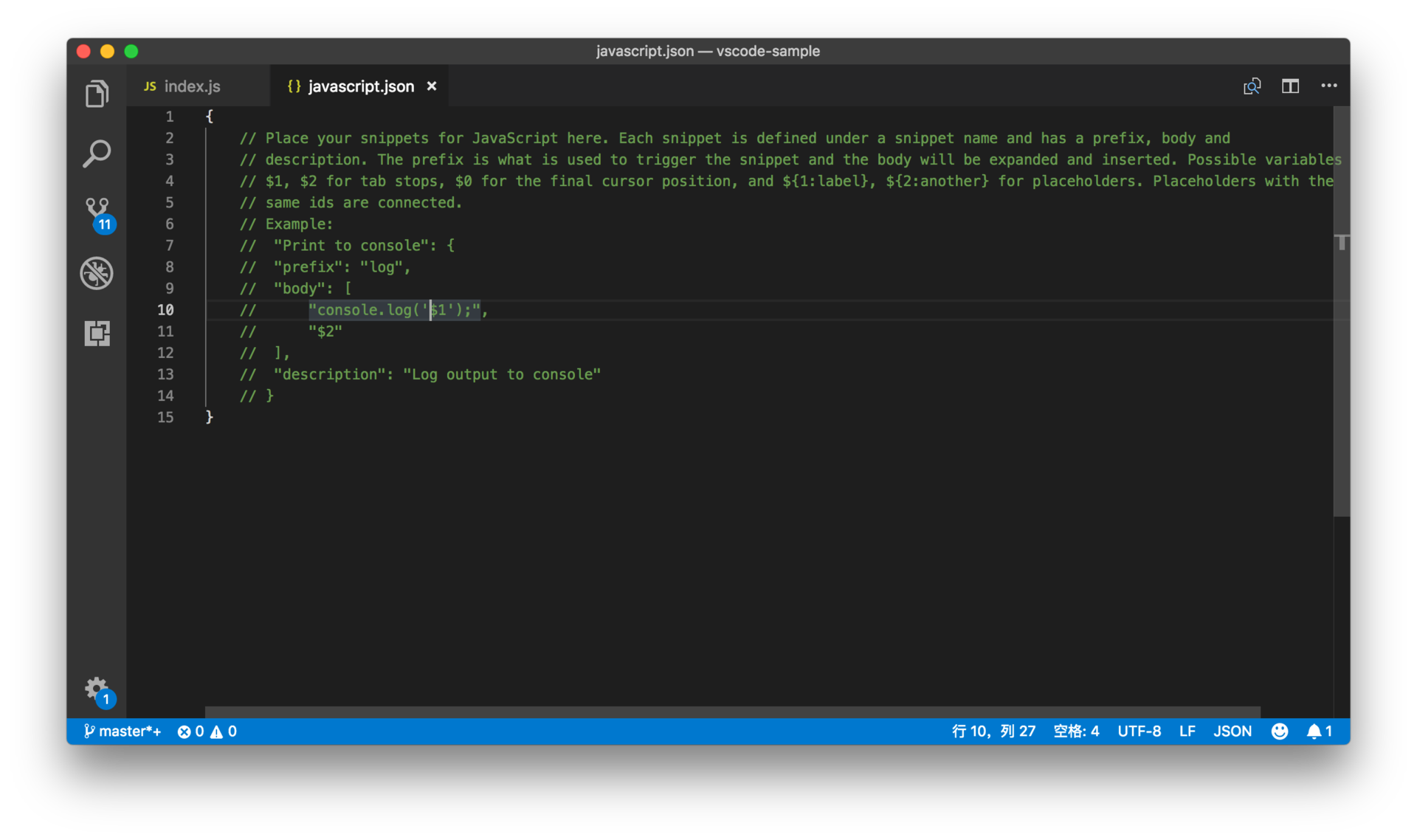此时,呈现在我们面前的这个 JSON 文件,就是我们今天要讲的主角:代码片段。