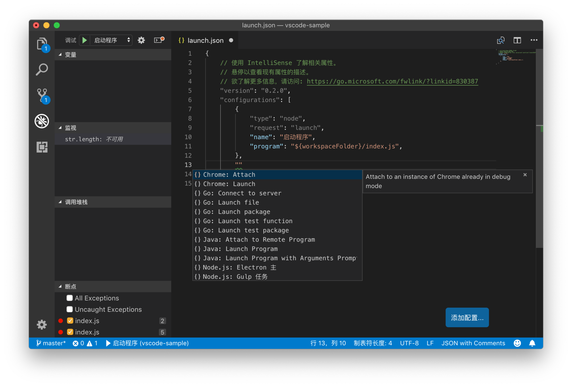 但是别怕,我们有办法降低书写它的难度。我们可以借助VS Code的调试器插件提供的模板,以及自动补全功能。