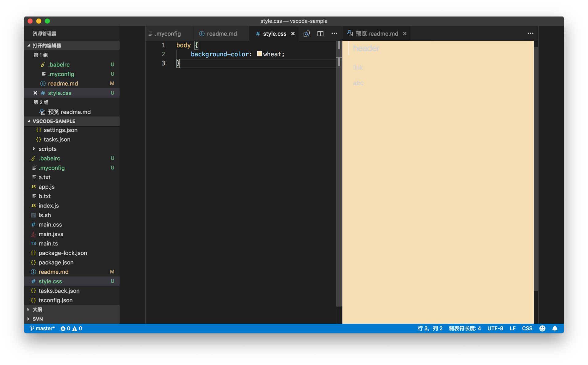 VS Code 的定位是一个文本编辑器,而不是富文本编辑器,所以你并不能像一些 Markdown 编辑器一样,获得所见即所得的体验。但是 VS Code 提供了一个 Markdown 预览的效果。
