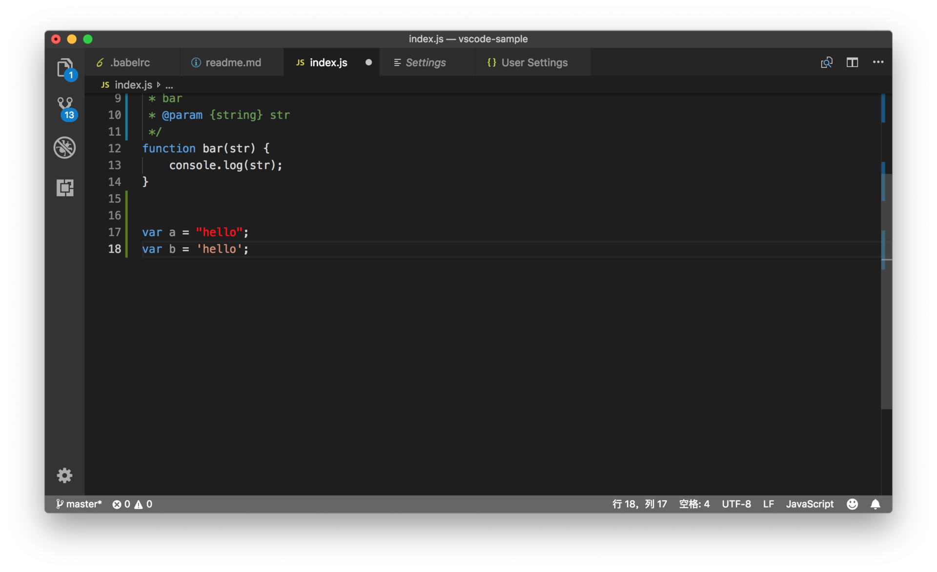 保存设置后,你再回到刚才的 JavaScript 文件时,就可以看到字符串颜色都变了。
