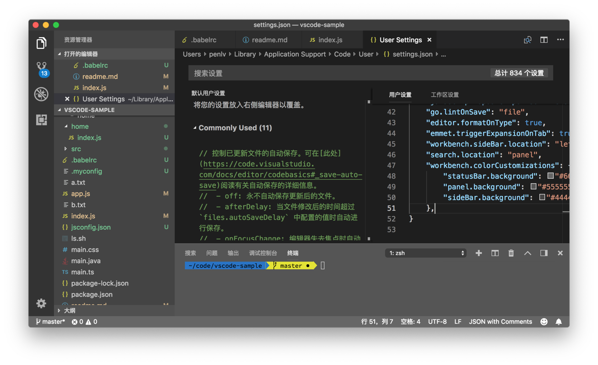 相信通过这三个例子,你就可以了解如何在你的不同设备之间共享 UI 设置了。通过设置来控制 UI 最棒的地方在于,你可以为不同的项目指定不同的设置。比如你可以在自己的个人设置里,将状态栏、侧边栏等都隐藏,这样当你打开一个新窗口时,或者只是编辑单个文件时,你不需要用到它们,自然也就不需要显示它们。而当你打开了某个项目时,可以由这个项目的情况来决定是否要将它们打开。比如说这个项目用了 Git,那么将侧边栏展示出来可能会更方便一些。